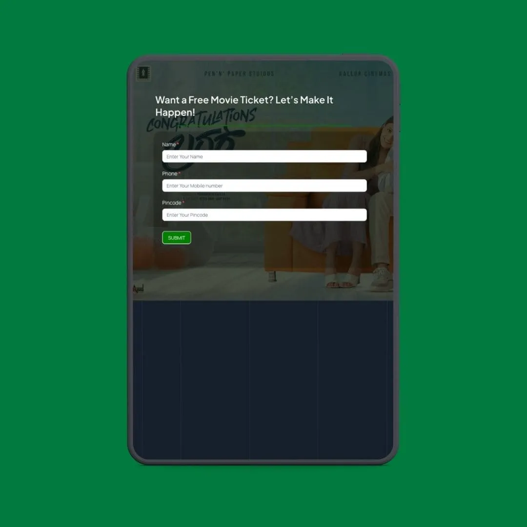 Our goal was to design a modern, cinematic, and interactive website that reflects the artistic identity of Pen n Paper Studios while promoting their newly released movie. Built using WordPress, we created a visually appealing platform that highlights film trailers, cast details, and promotional events. Additionally, we developed an interactive QR-based student campaign, allowing students to scan a code, enter their details, and win free movie tickets โ enhancing both engagement and audience reach.